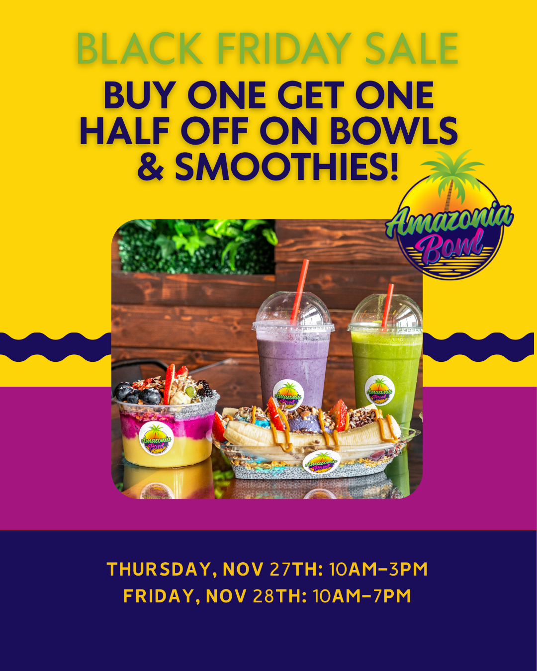 For Amazonia Bowl, we built vibrant, clean creative that highlights their tropical brand and drives attention to new menu items, giveaways, and seasonal promotions. The mobile-first graphics strengthened engagement across their social channels and helped them draw more foot traffic during their re-launch.